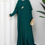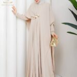 الخامة والموسم: صنعت العباية من قماش كريب ناعم بلمسة حريرية مطفية، وهو قماش معروف بمتانته ونعومته الفائقة على البشرة. بفضل جودة القماش، تعتبر هذه العباية مناسبة لجميع فصول السنة، حيث توفر البرودة في الصيف والثبات المطلوب في الأجواء المعتدلة.
