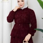طقم تركي قطعتين لون زيتي أنيق للمحجبات.