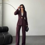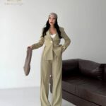 نوع القطعة: طقم (بليزر مفصل + بنطال واسع)